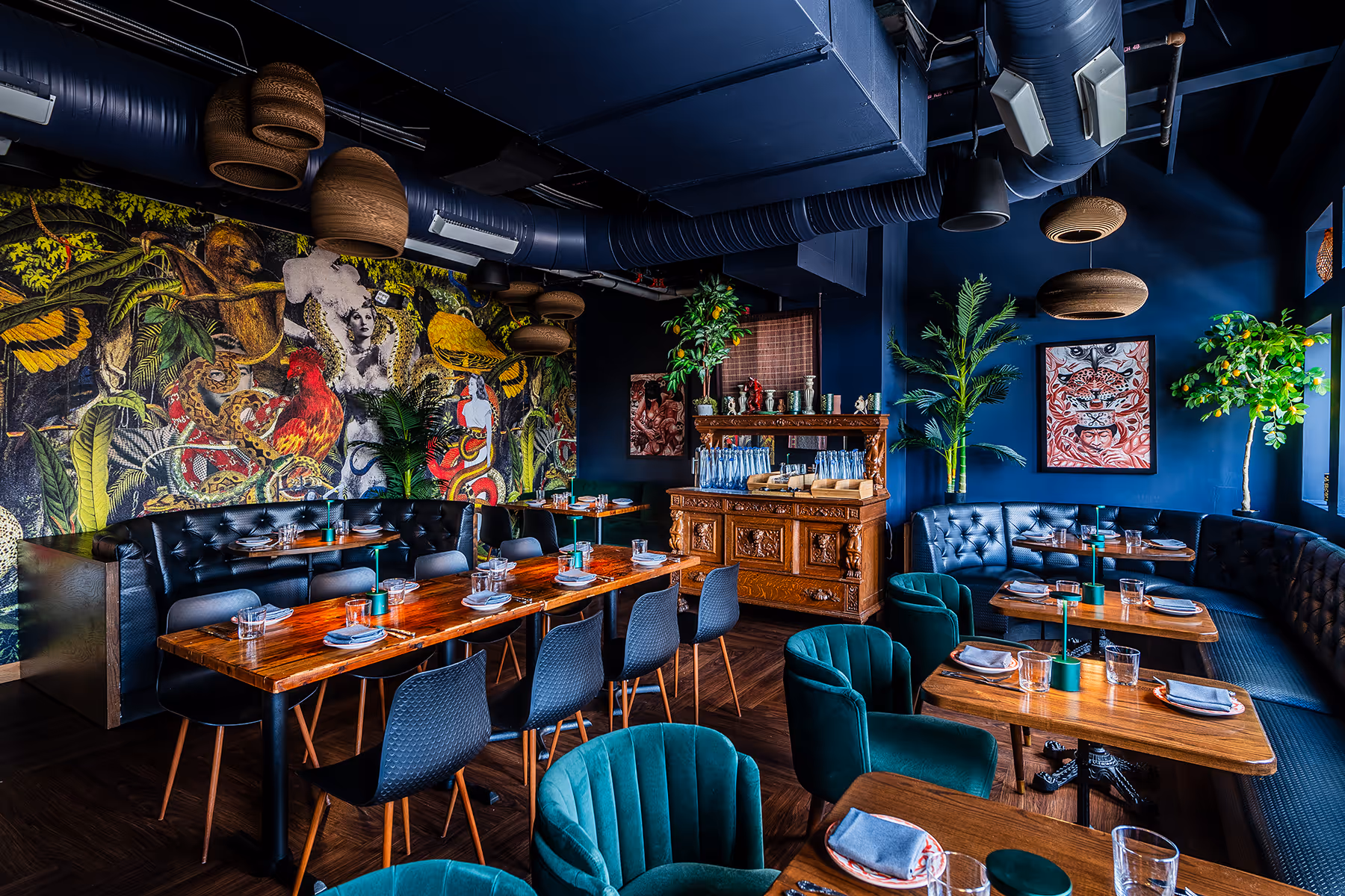 Each of our three, unique spaces conjure Peruvian energy. Lean into the greenery and warmth of the roofdeck, the expansive wood bar and comfortable seating in the bar, or the artwork and privacy of the Iquitos Room.
